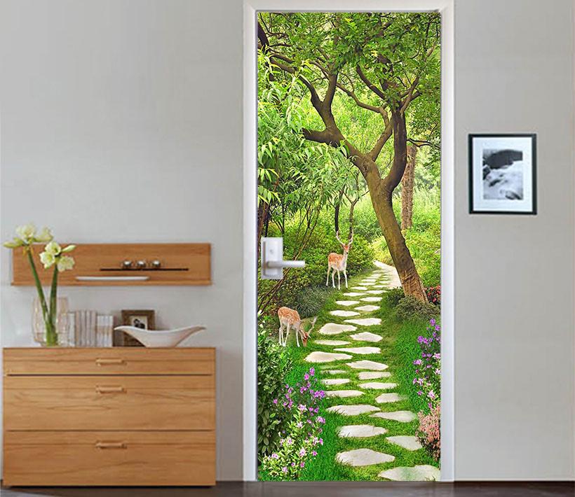 3D little elk by the roadside door mural