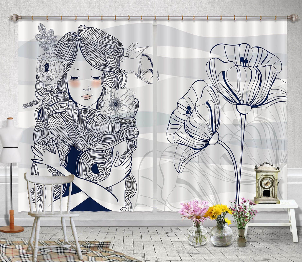 3D Lotus Girl 718 Curtains Drapes