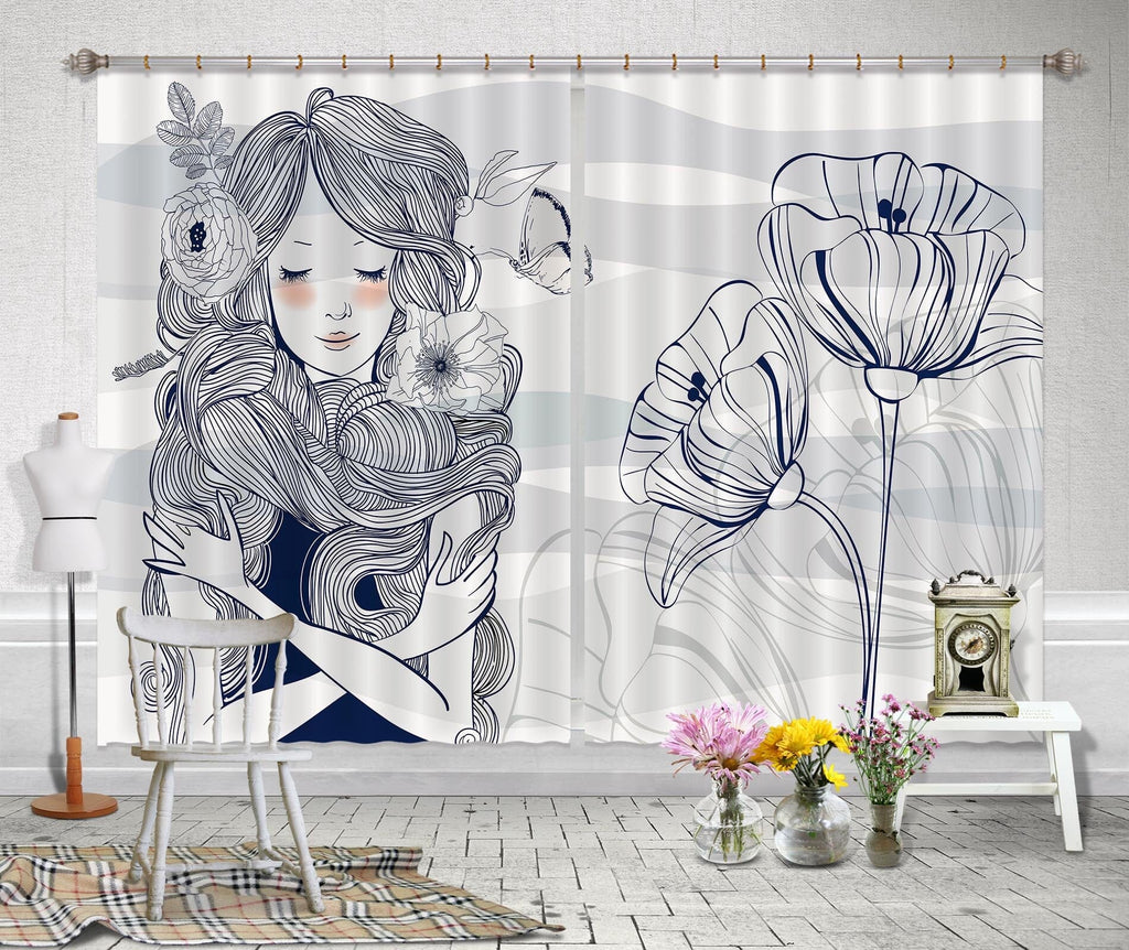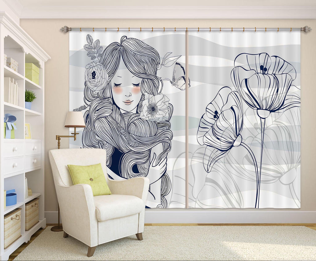 3D Lotus Girl 718 Curtains Drapes Dai