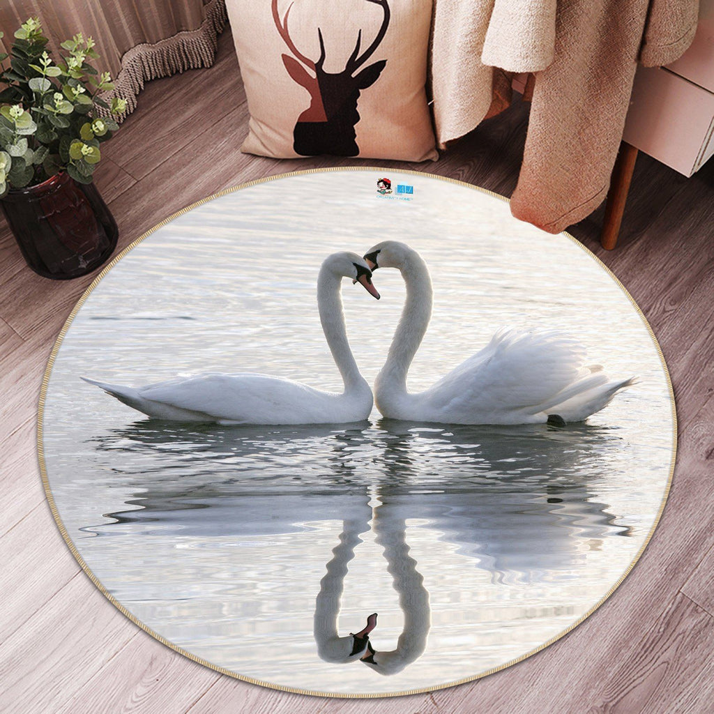3D Lovers Swan 083 Round Non Slip Rug Mat