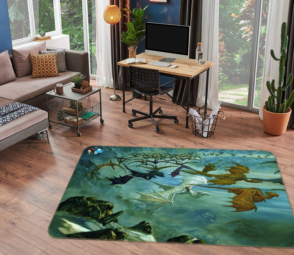 3D Many Dragons Fly 5162 Ciruelo Rug Non Slip Rug Mat Sinsin