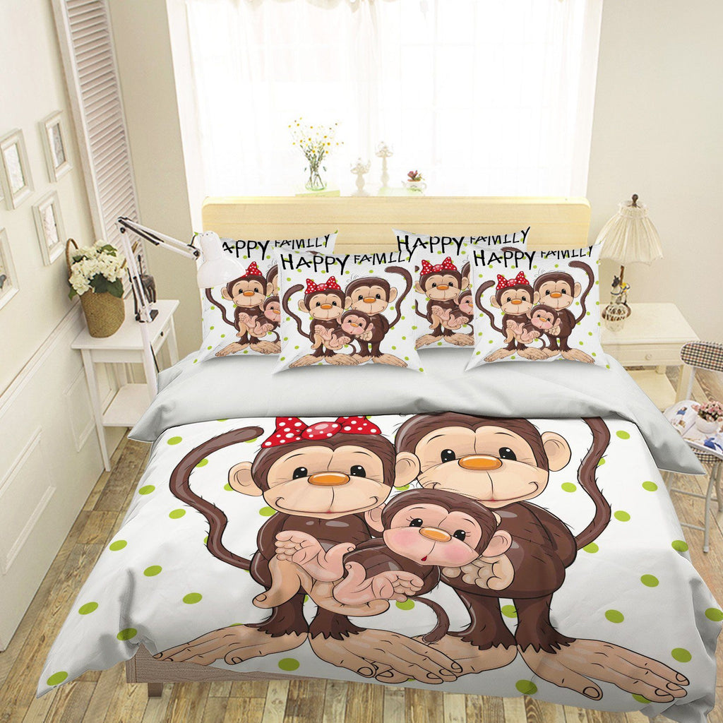 3D Monkey Family 319 Bed Pillowcases Quilt