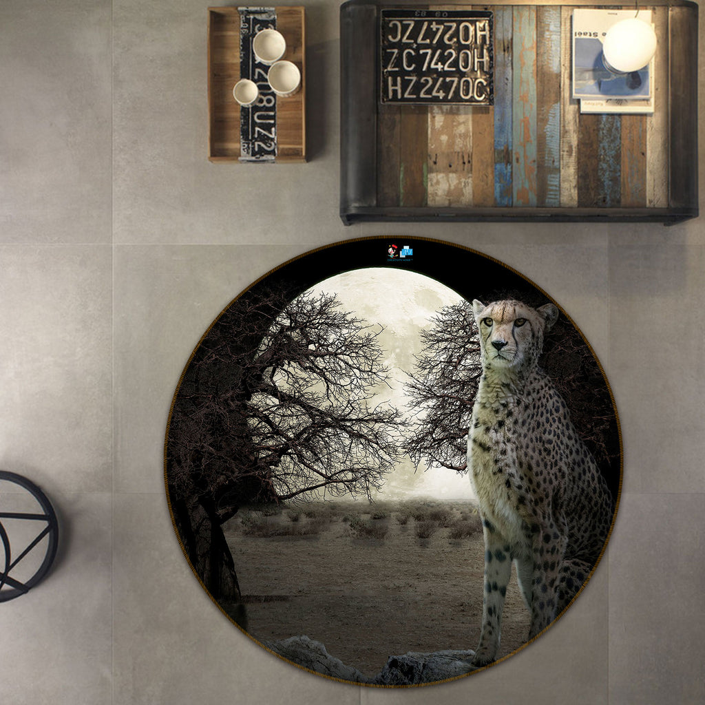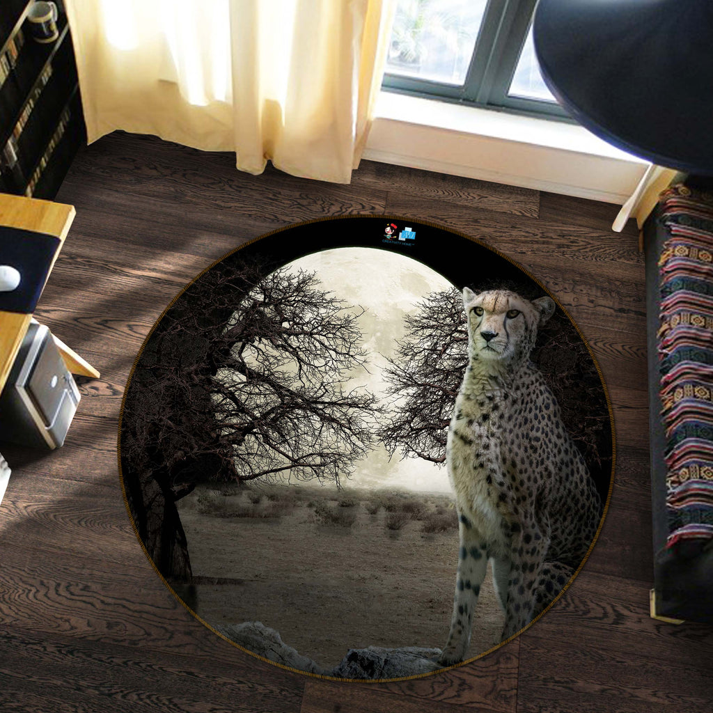 3D Moon Branch Leopard 5050 Beth Sheridan Rug Round Non Slip Rug Mat Amy