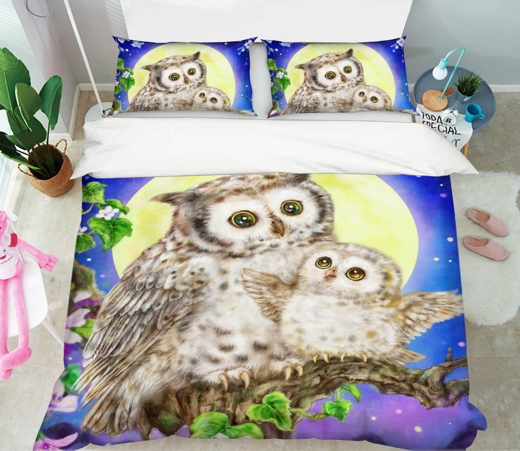3D Moon Owl Flower 5940 Kayomi Harai Bedding Bed Pillowcases Quilt Cover Duvet Cover Amy