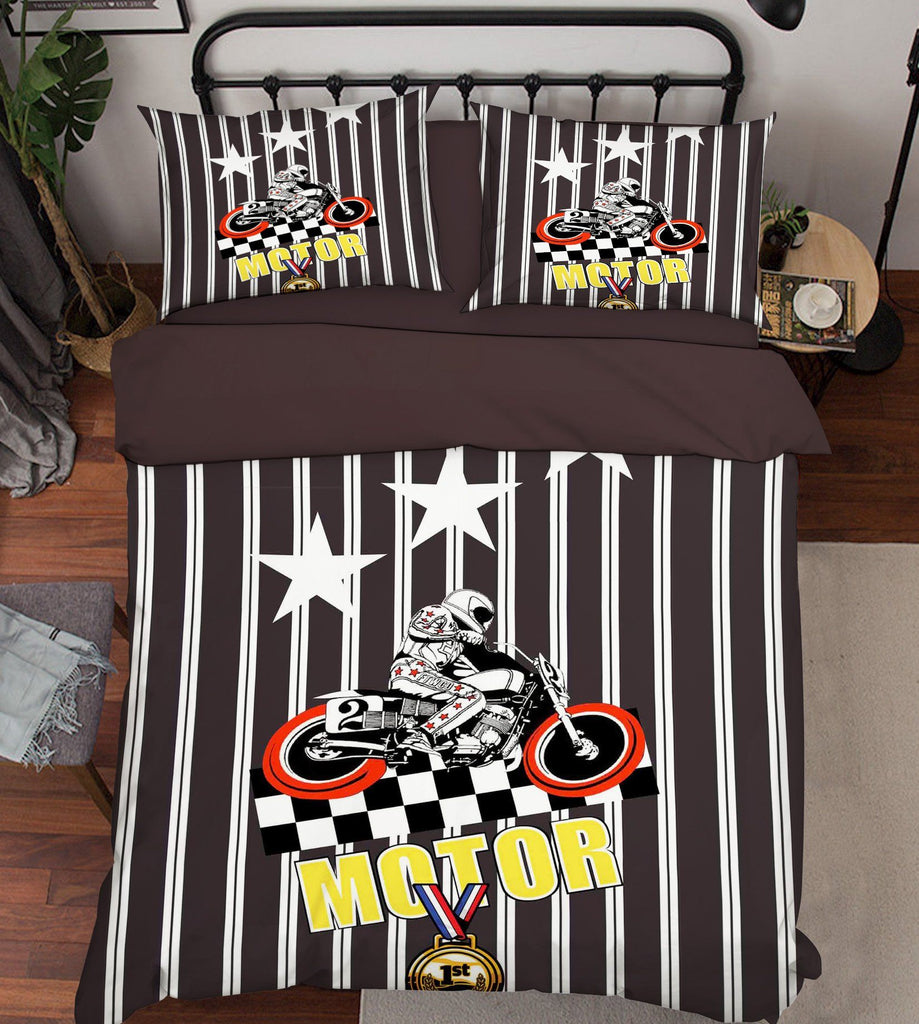 3D Motorcyclist Stripes 313 Bed Pillowcases Quilt