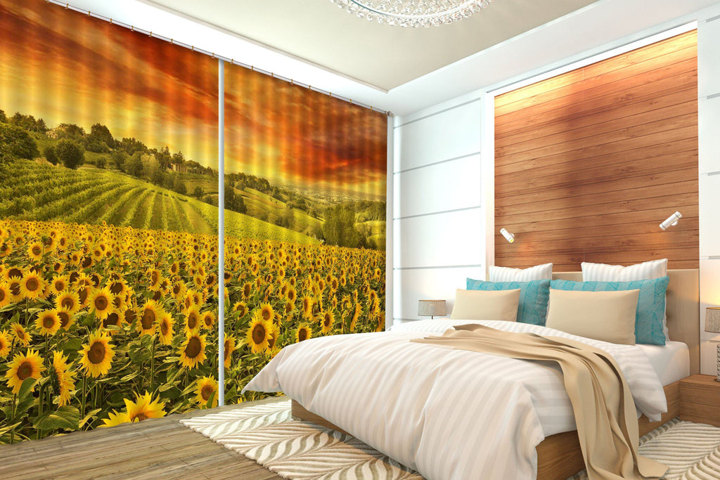 3D Mountain Sunflowers Field 130 Curtains Drapes
