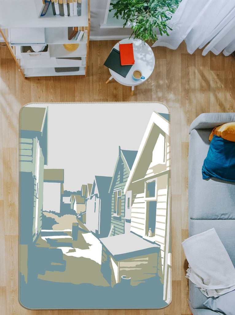 3D Mudeford Beach Huts 1124 Steve Read Rug Non Slip Rug Mat