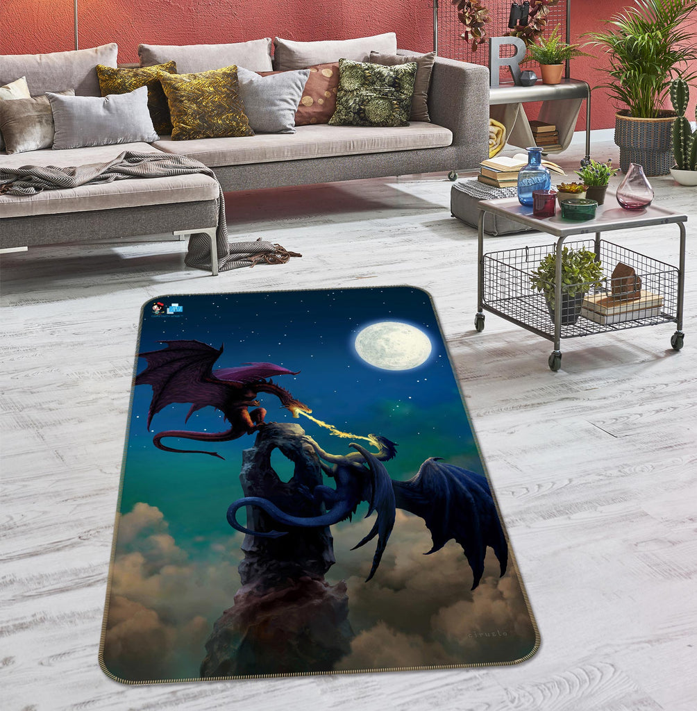 3D Night Two Dragons Moon Cloud 6046 Ciruelo Rug Non Slip Rug Mat Sinsin