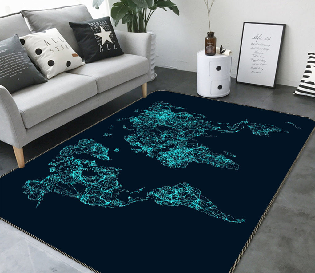 3D Night World 323 World Map Non Slip Rug Mat