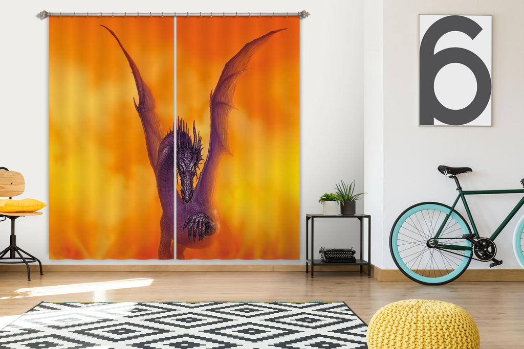 3D Orange Sky Purple Dragon 7164 Ciruelo Curtain Curtains Drapes