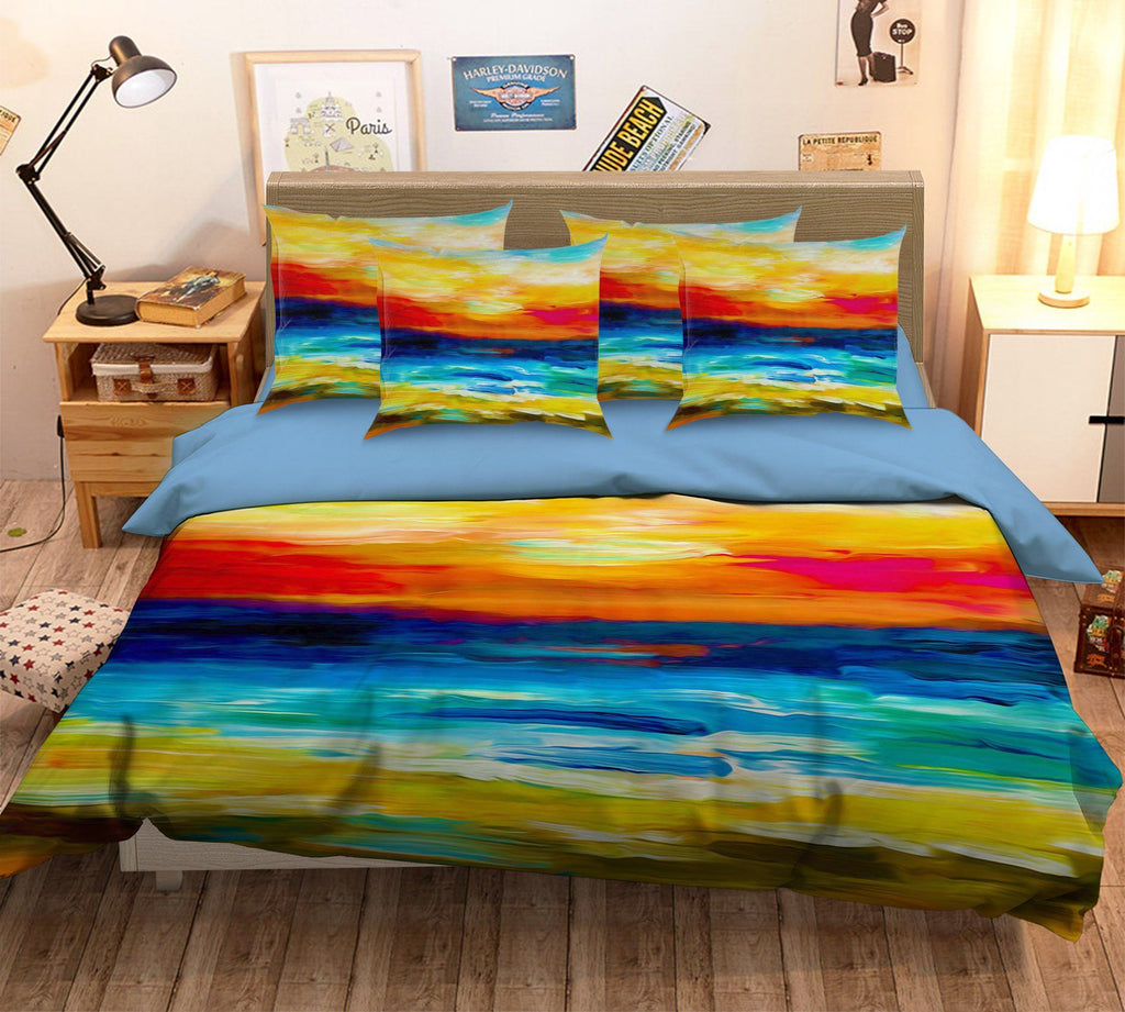 3D Paint Sunset 076 Bed Pillowcases Quilt