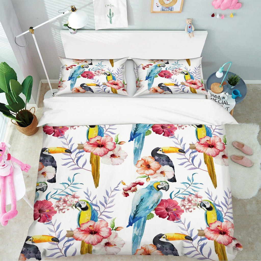 3D Parrot Flower 142 Bed Pillowcases Quilt