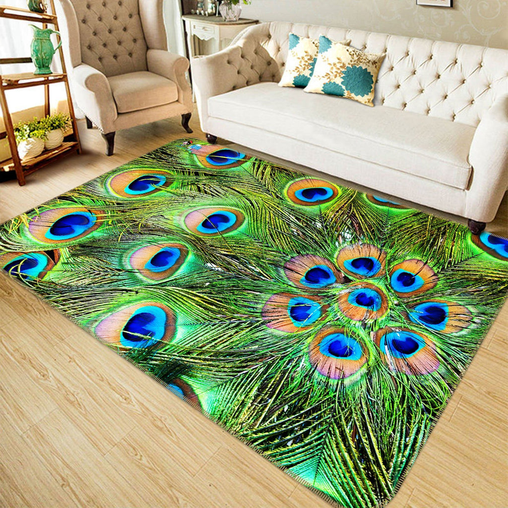 3D Peacock Feathers Pattern 1 Non Slip Rug Mat