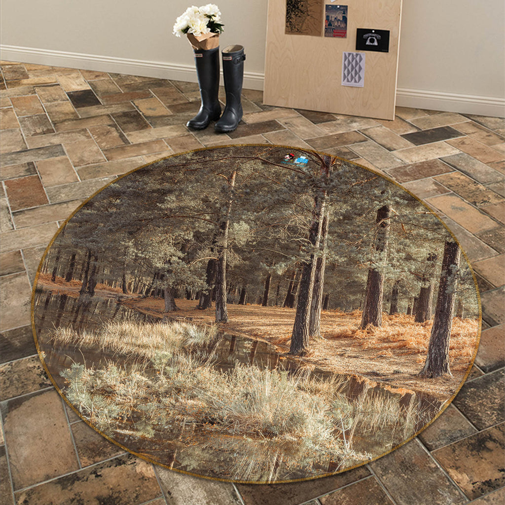 3D Pine Forest 7386 Assaf Frank Rug Round Non Slip Rug Mat Amy