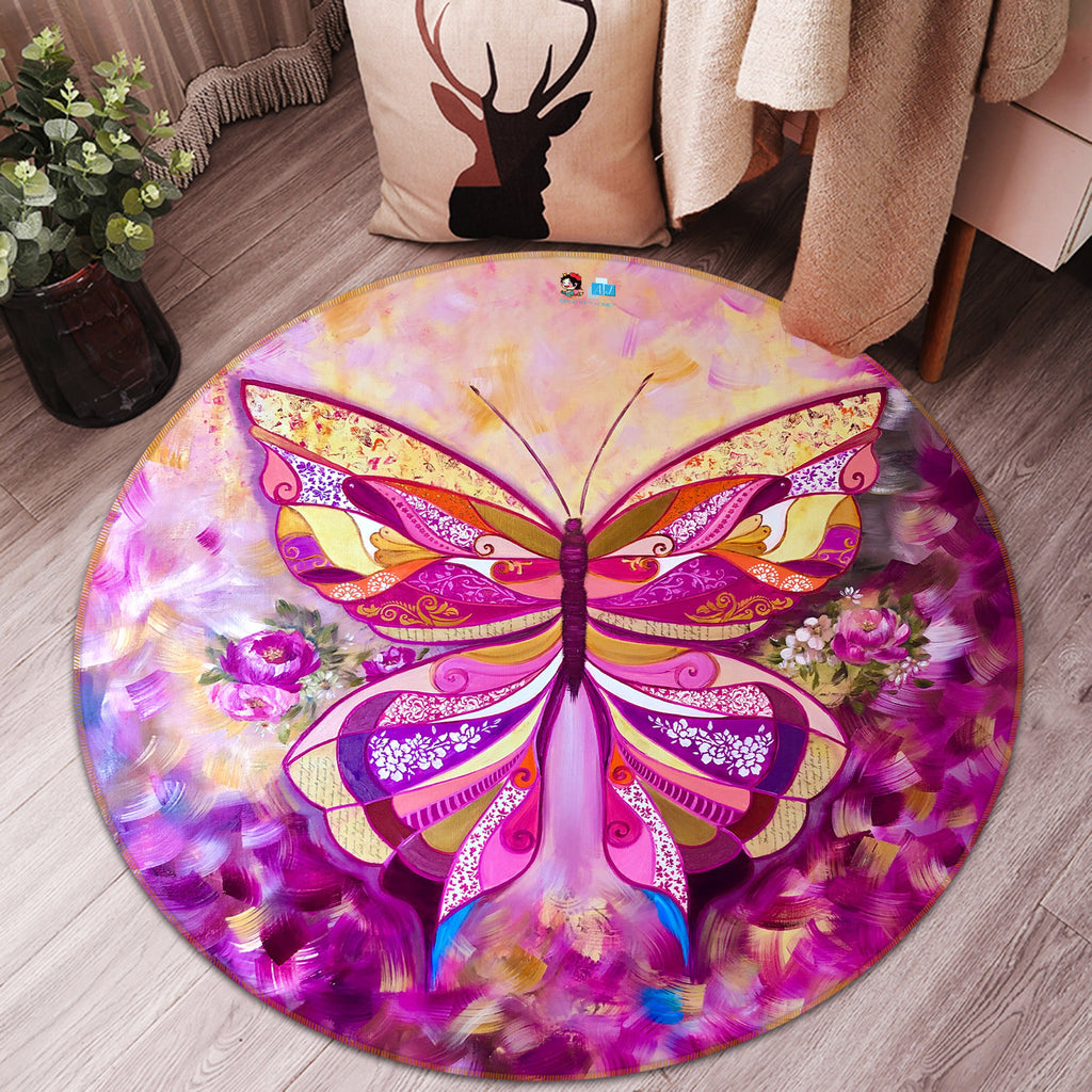 3D Pink Butterfly Petals 892 Skromova Marina Rug Round Non Slip Rug Mat Amy