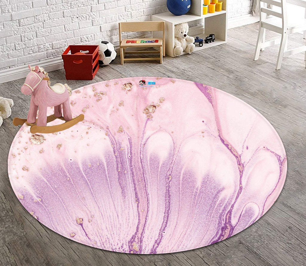 3D Pink Fan Shape 171 Round Non Slip Rug Mat