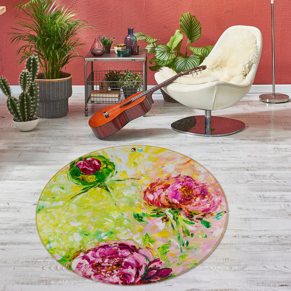 3D Pink Flower 869 Skromova Marina Rug Round Non Slip Rug Mat Amy