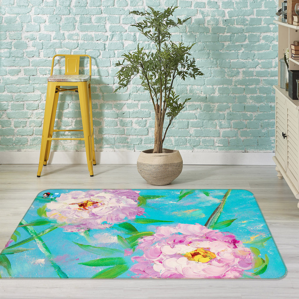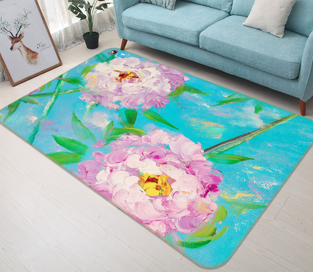 3D Pink Flower Leaves 1214 Skromova Marina Rug Non Slip Rug Mat Amy