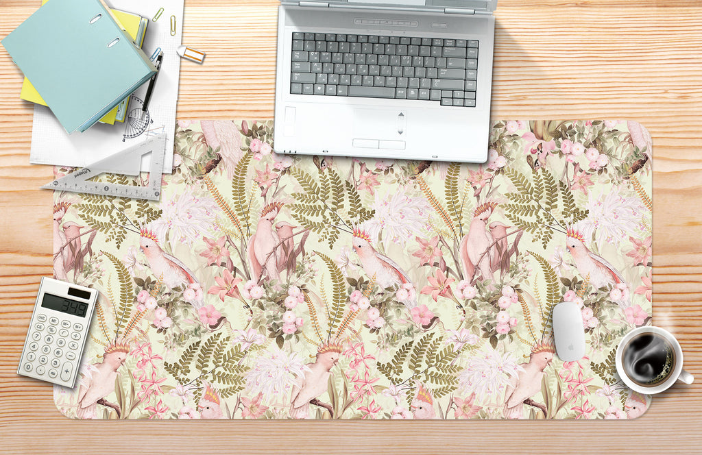 3D Pink Flower Parrot 120146 Uta Naumann Desk Mat Sinsin