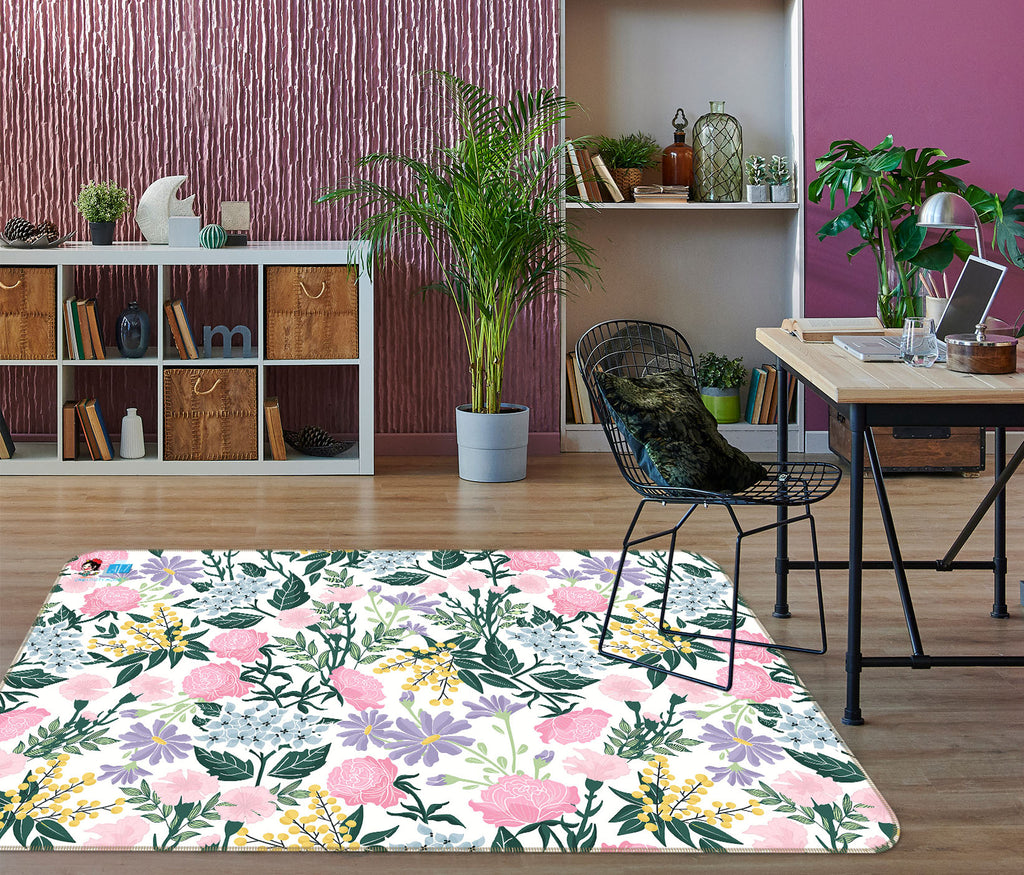 3D Pink Purple Flower Branch 107103 Kashmira Jayaprakash Rug Non Slip Rug Mat