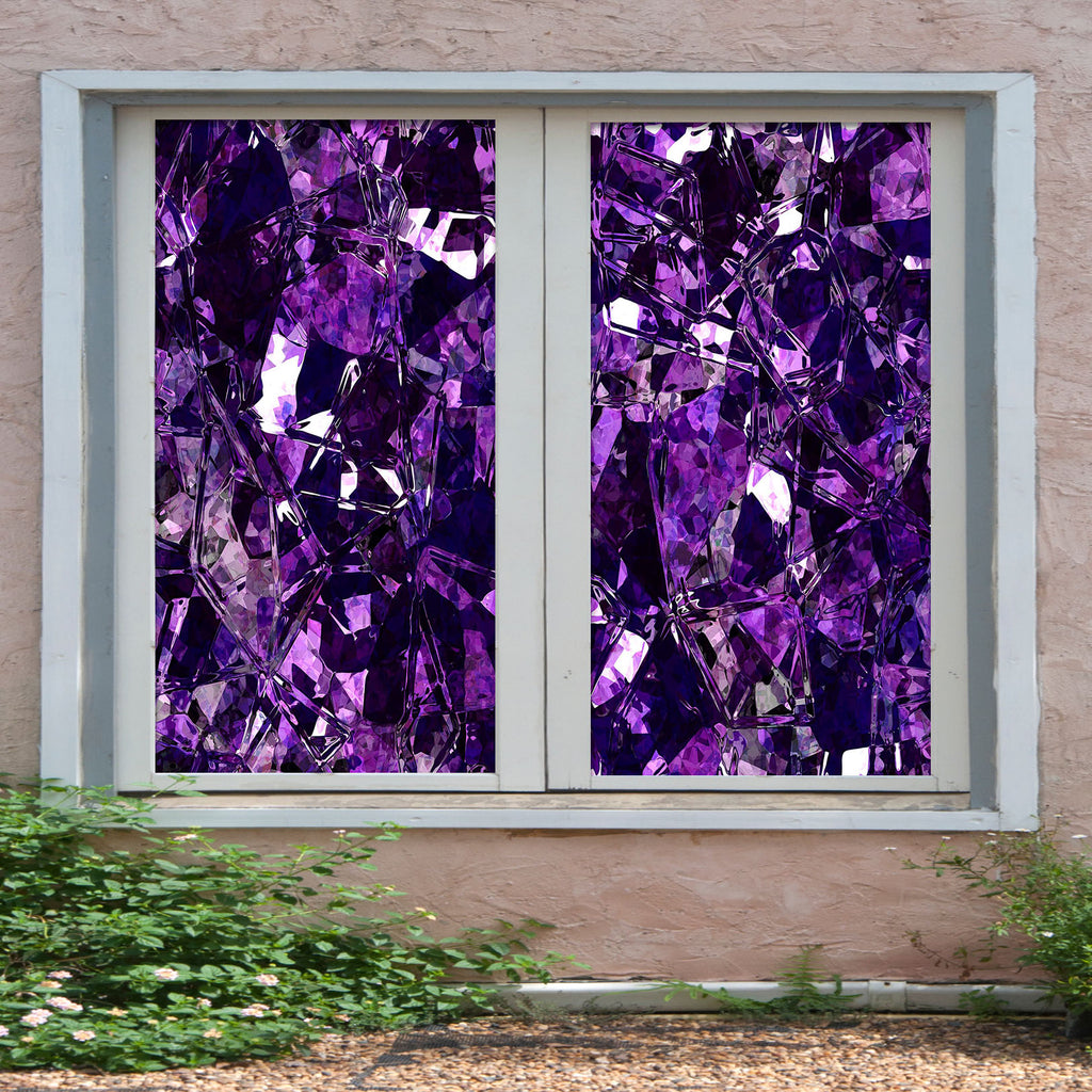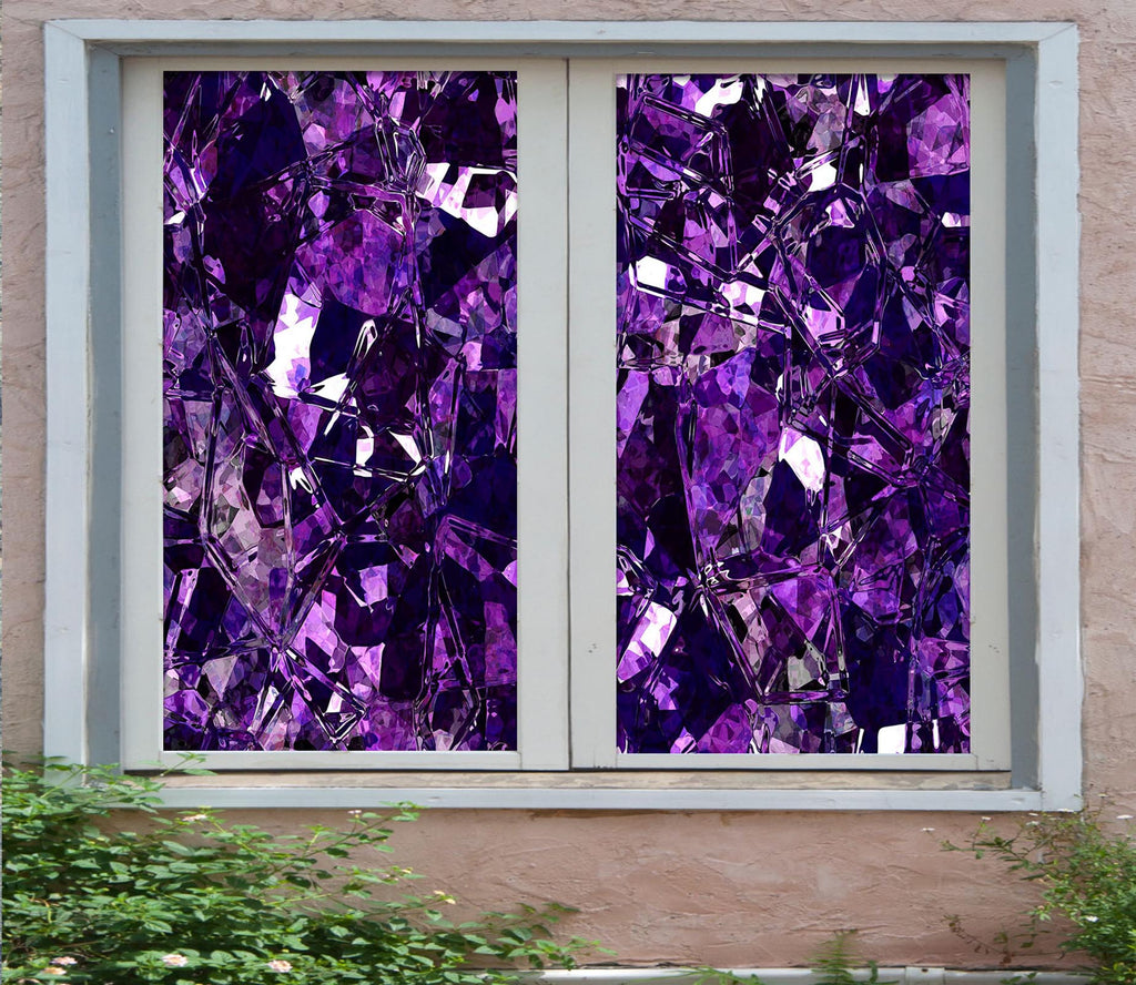 3D Purple Crystal 331 Window Film Print Sticker Cling Stained Glass UV Block