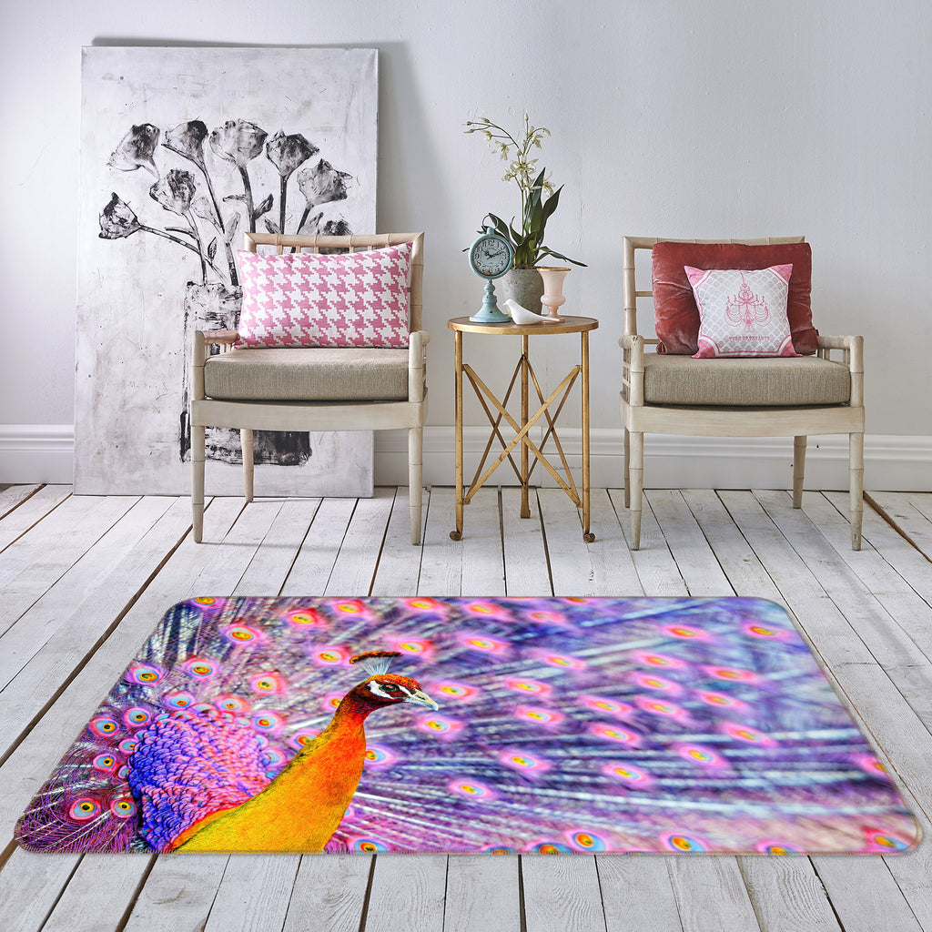 3D Purple Peacock 121 Animal Non Slip Rug Mat Zoe