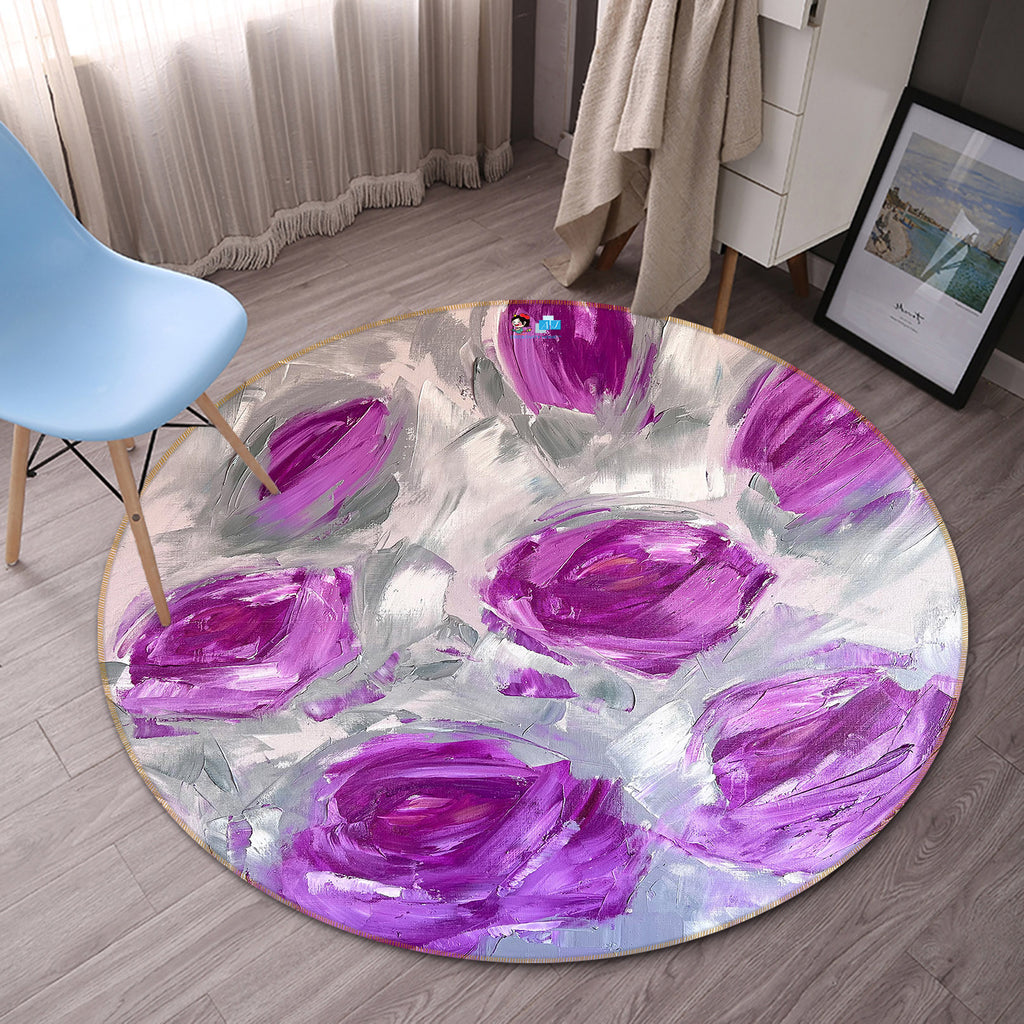 3D Purple Rose 3893 Skromova Marina Rug Round Non Slip Rug Mat Amy