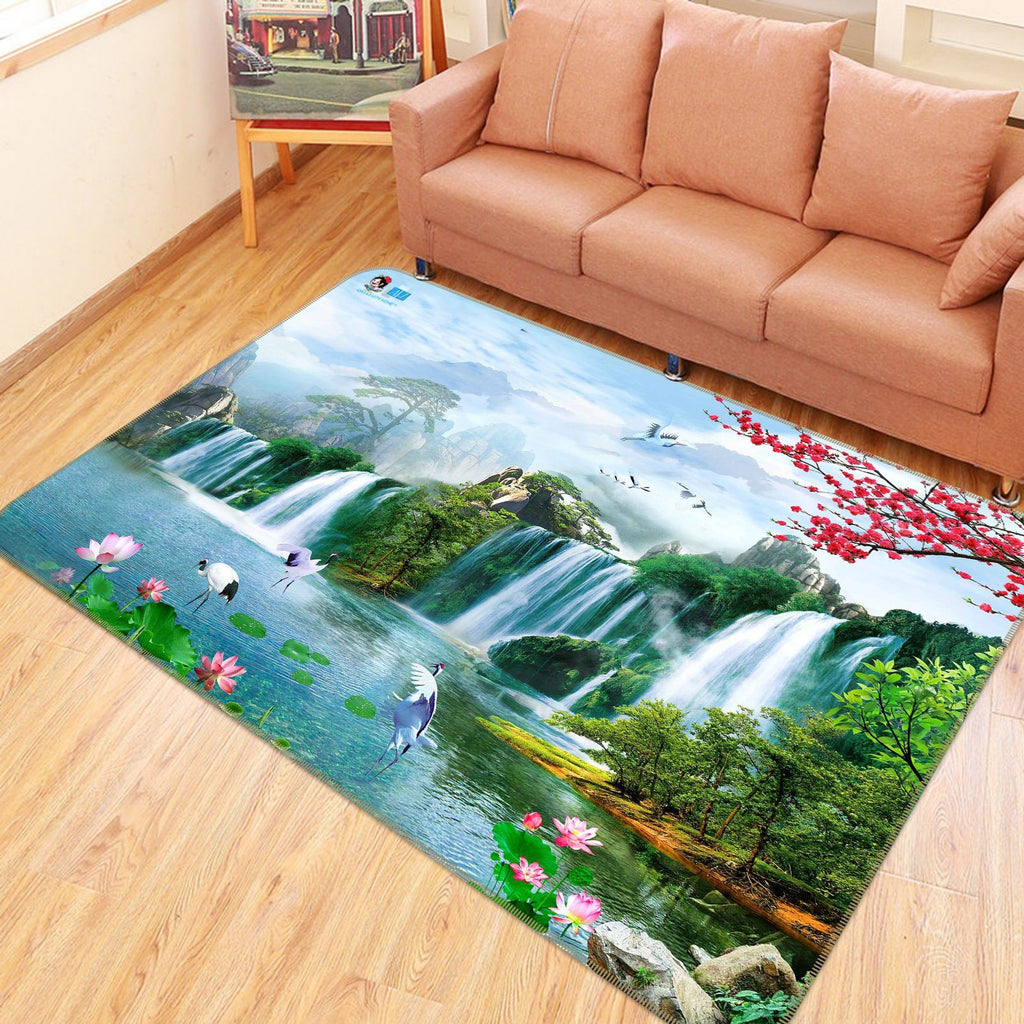 3D Red-Crowned Crane Lotus 591 Non Slip Rug Mat