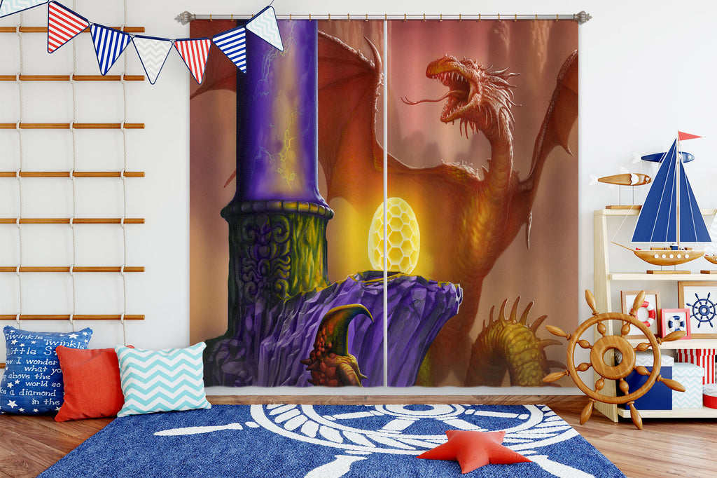 3D Red Dragon Golden Egg 7170 Ciruelo Curtain Curtains Drapes