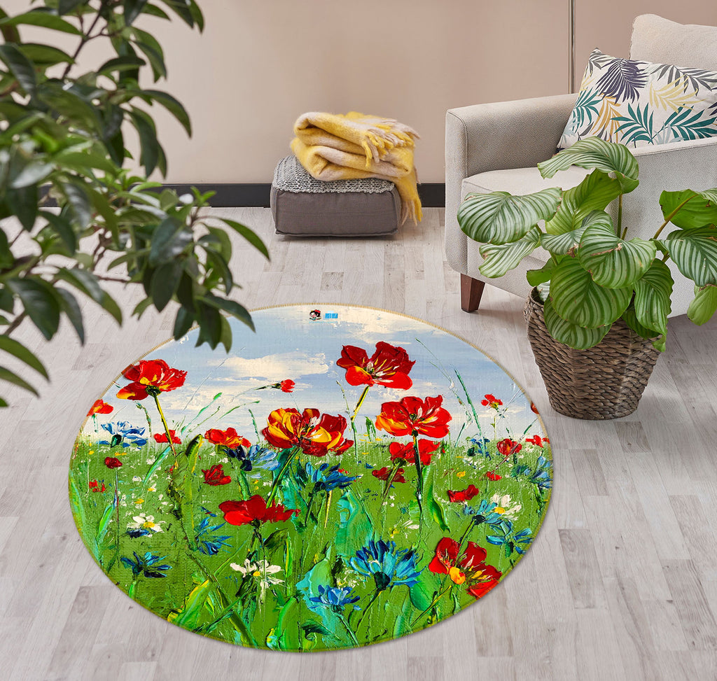 3D Red Flower Grass 916 Skromova Marina Rug Round Non Slip Rug Mat Amy