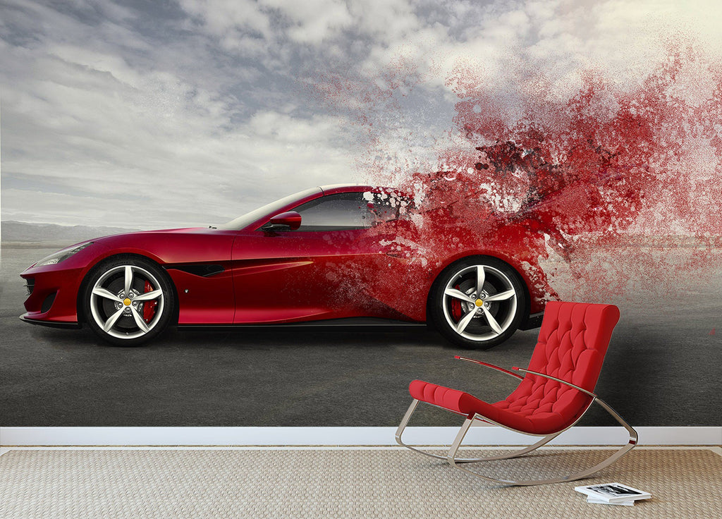 3D Red Sports Car 895 Vehicle Wall Murals Zoe