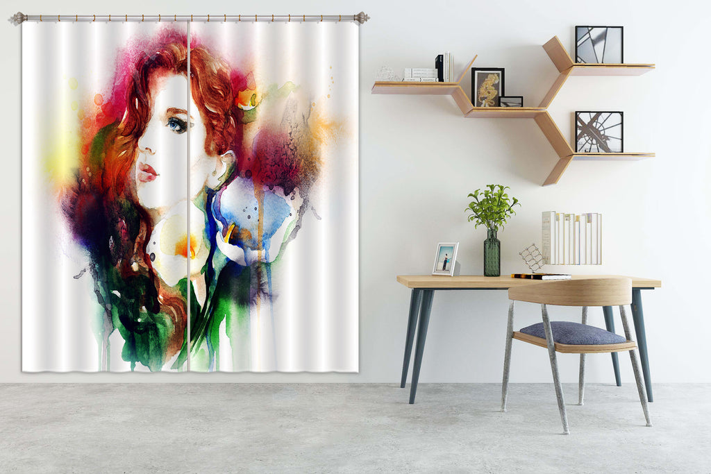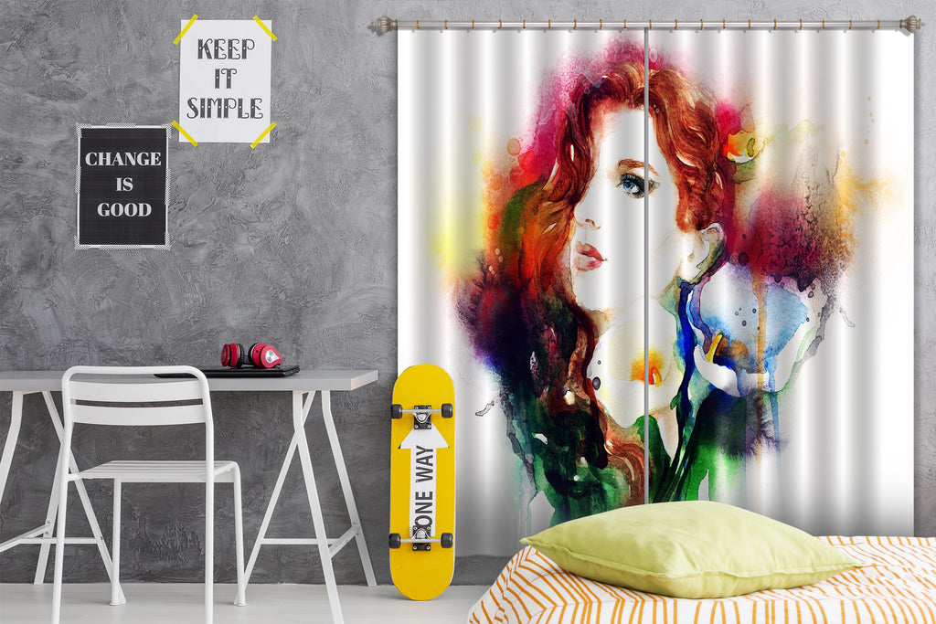 3D Redhead Woman 011 Curtains Drapes