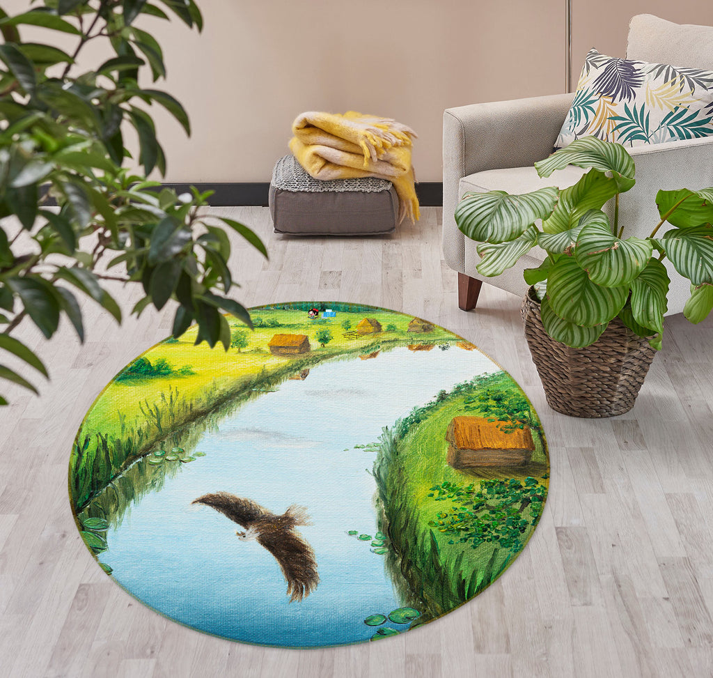 3D River Eagle 18130 Marina Zotova Rug Round Non Slip Rug Mat Sinsin