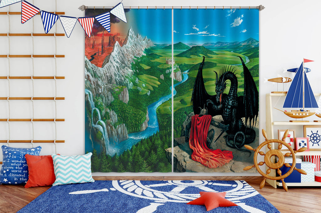 3D River Meadow Dragon 7176 Ciruelo Curtain Curtains Drapes