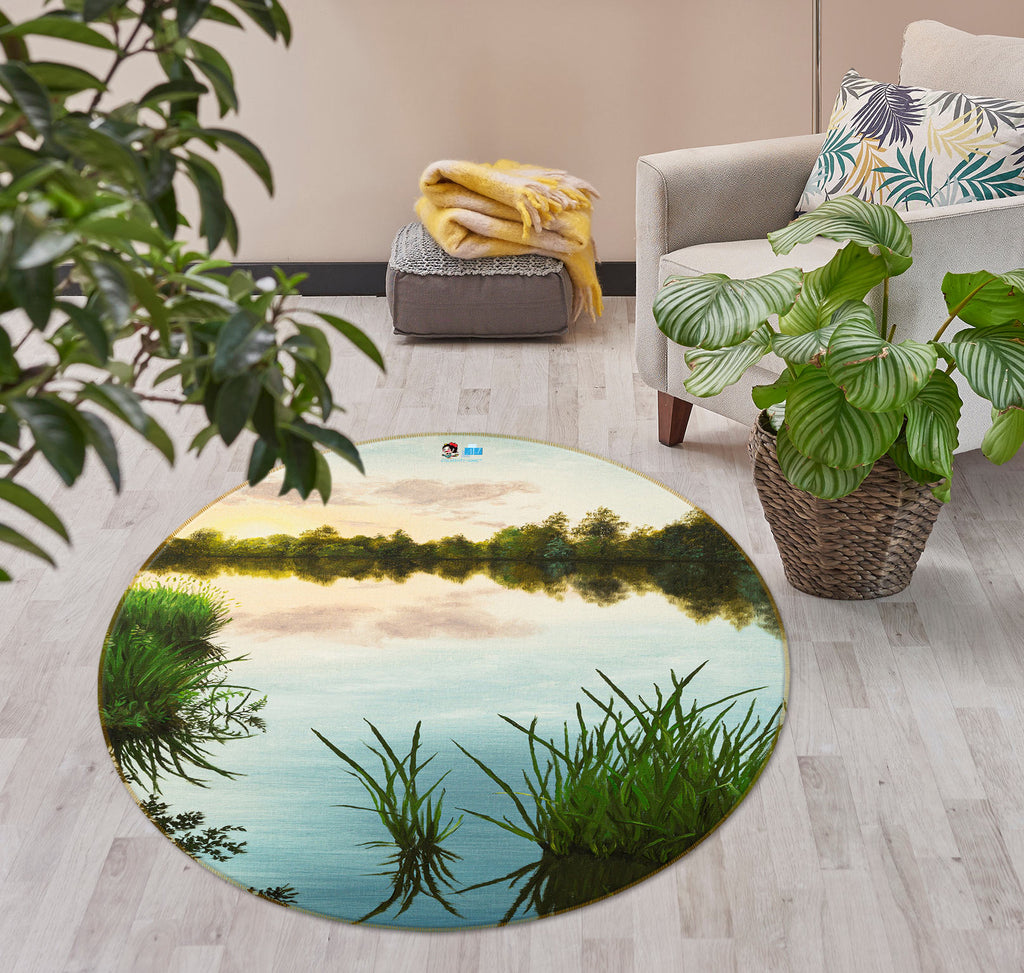 3D Riverside Grass 18145 Marina Zotova Rug Round Non Slip Rug Mat Sinsin