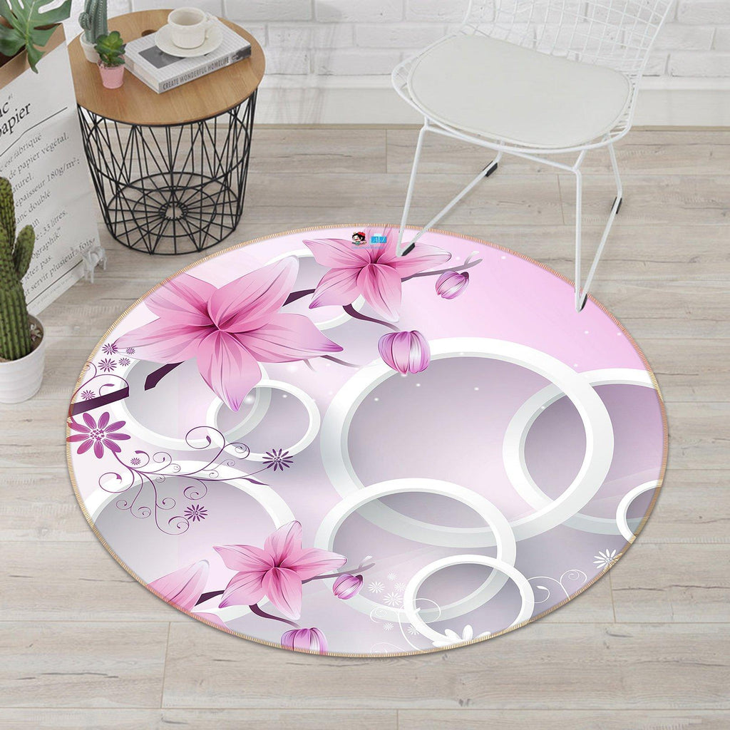 3D Round Flower 021 Round Non Slip Rug Mat
