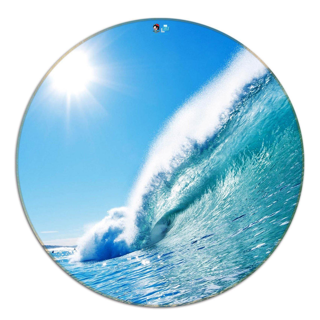 3D Sea High Wave 110 Round Non Slip Rug Mat