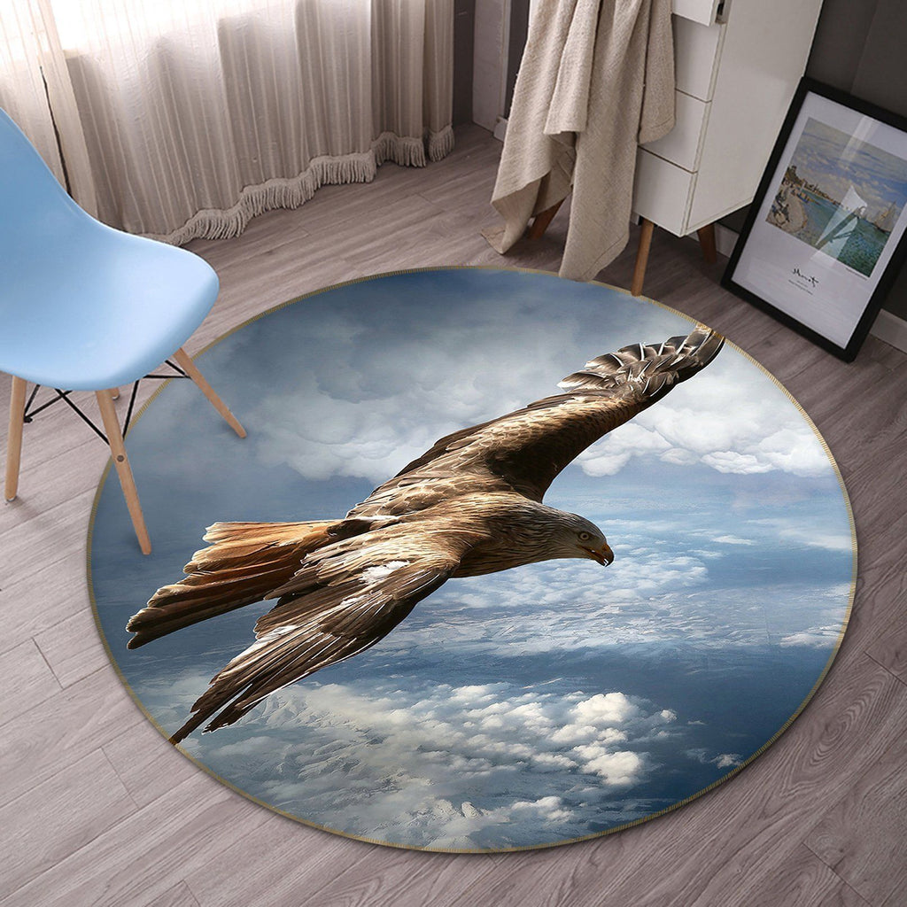 3D Seabird Hovering 011 Animal Round Non Slip Rug Mat