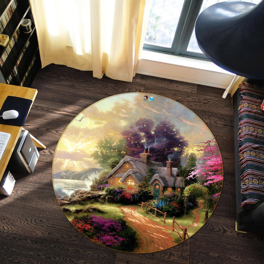 3D Seaside Cottage 16 Round Non Slip Rug Mat
