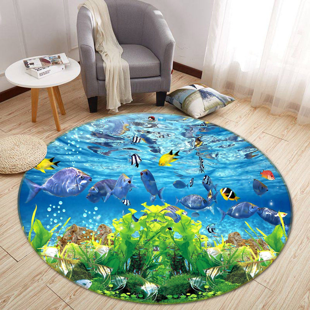 3D Seaweed Fish 026 Round Non Slip Rug Mat