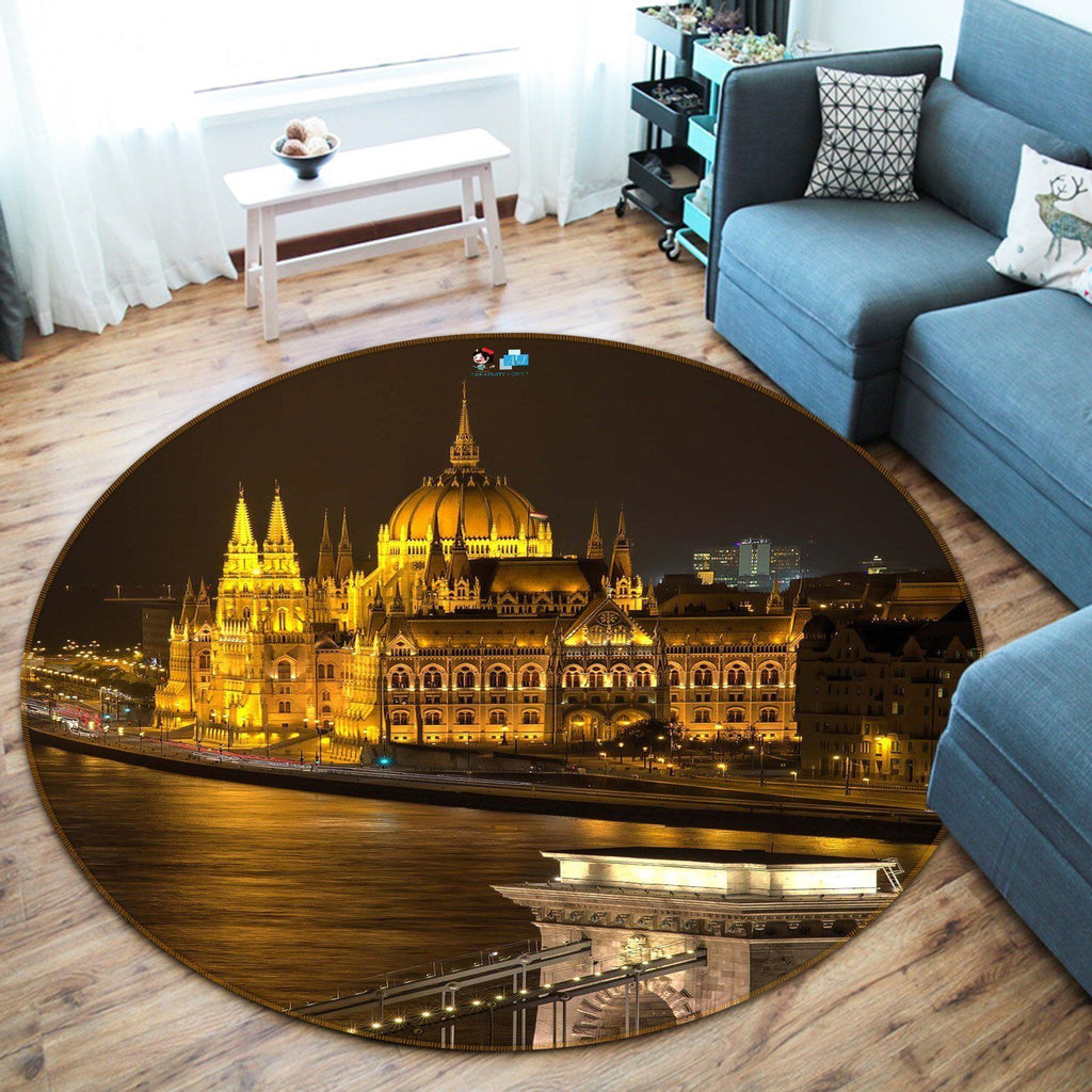 3D Silent City Night 114 Round Non Slip Rug Mat