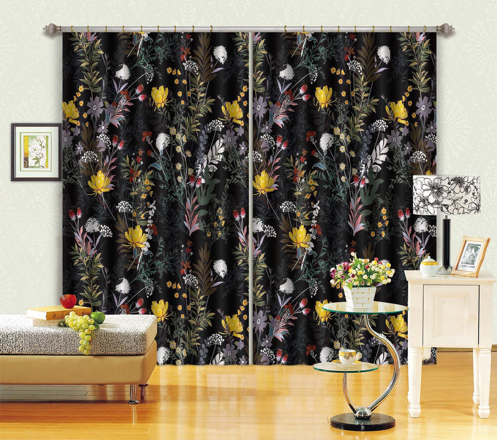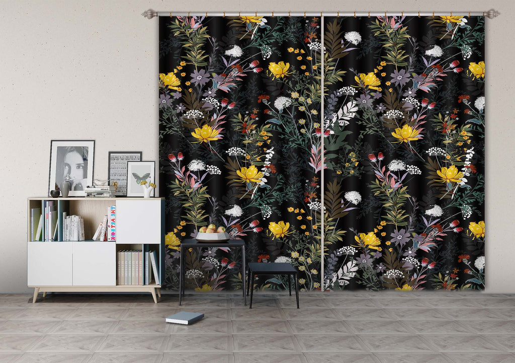 3D Small Yellow Flower 741 Curtains Drapes Dai