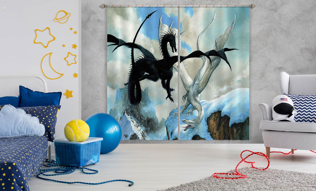 3D Snow Mountain Black White Dragon 7214 Ciruelo Curtain Curtains Drapes