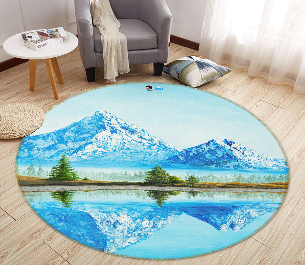 3D Snow Mountain Lake 18146 Marina Zotova Rug Round Non Slip Rug Mat Sinsin