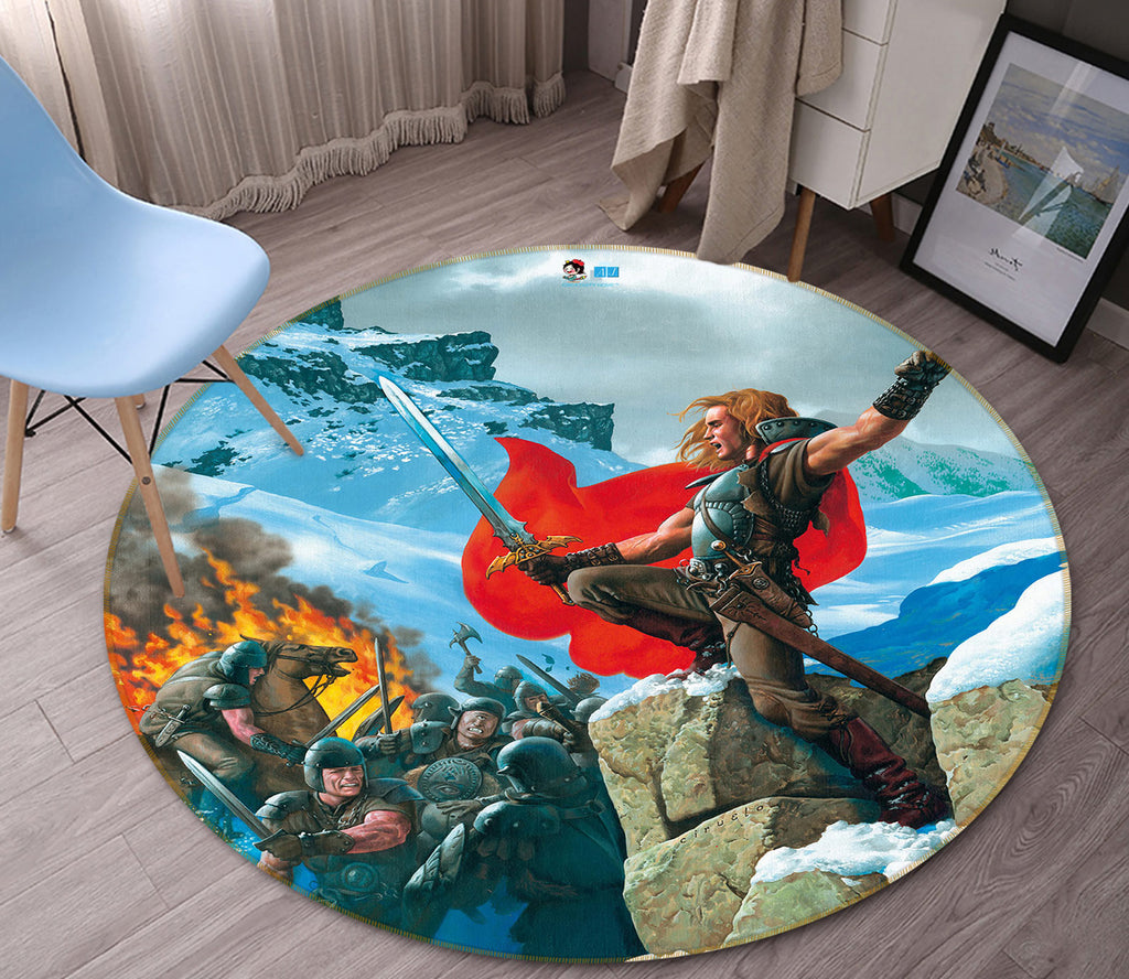 3D Snow Mountain Soldier Fighting 6077 Ciruelo Rug Round Non Slip Rug Mat Sinsin