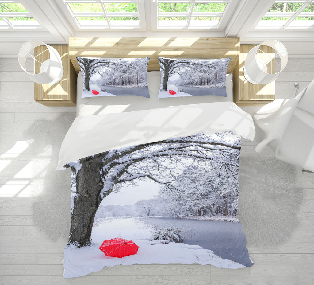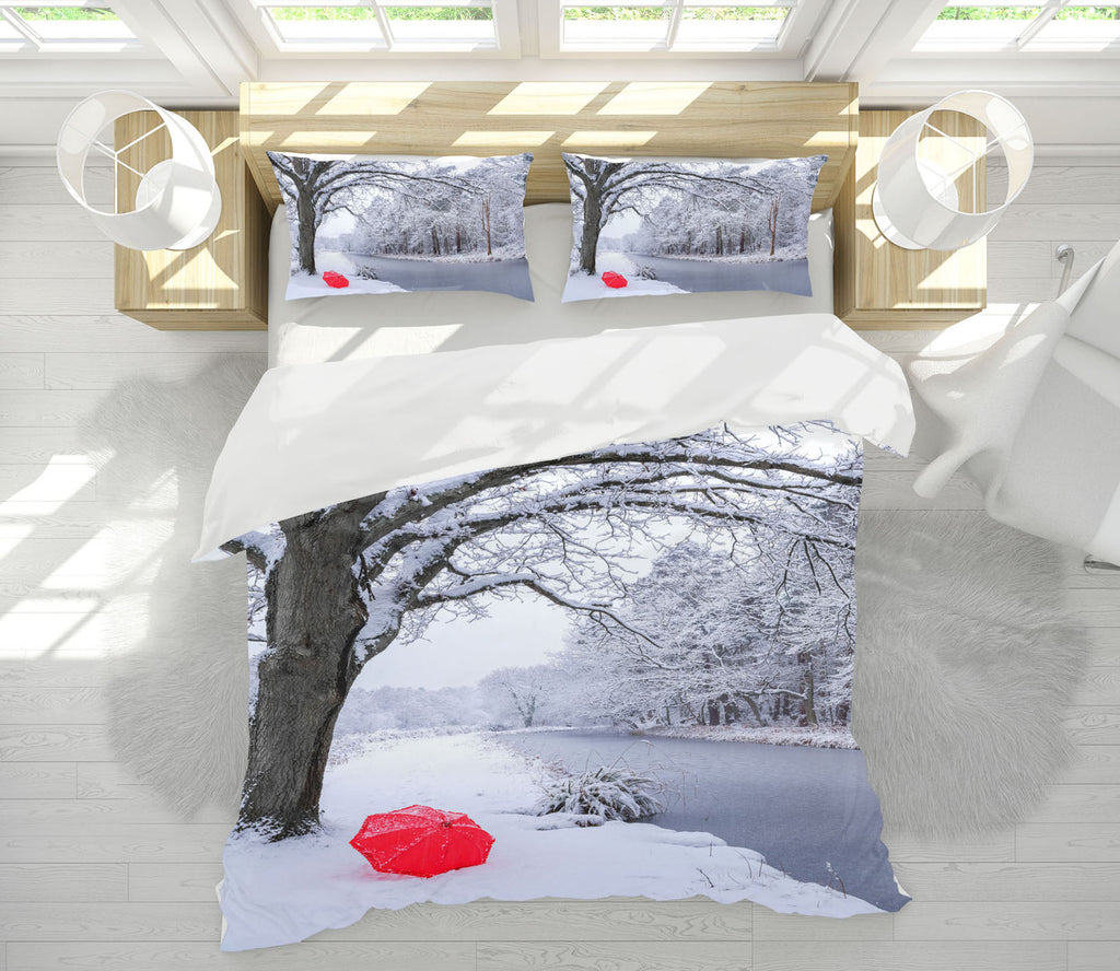 3D Snow Tree Red Umbrella 85156 Assaf Frank Bedding Bed Pillowcases Quilt