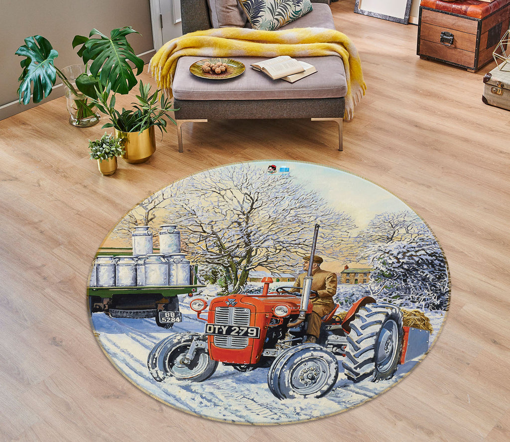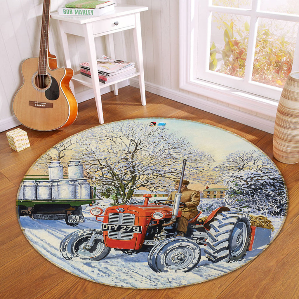 3D Snowfield Tractor 8909 Trevor Mitchell Rug Round Non Slip Rug Mat Sinsin