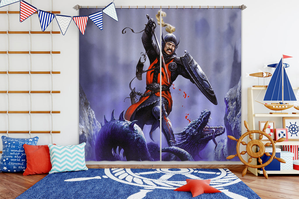 3D Soldier Kills Dragon 7179 Ciruelo Curtain Curtains Drapes Sinsin