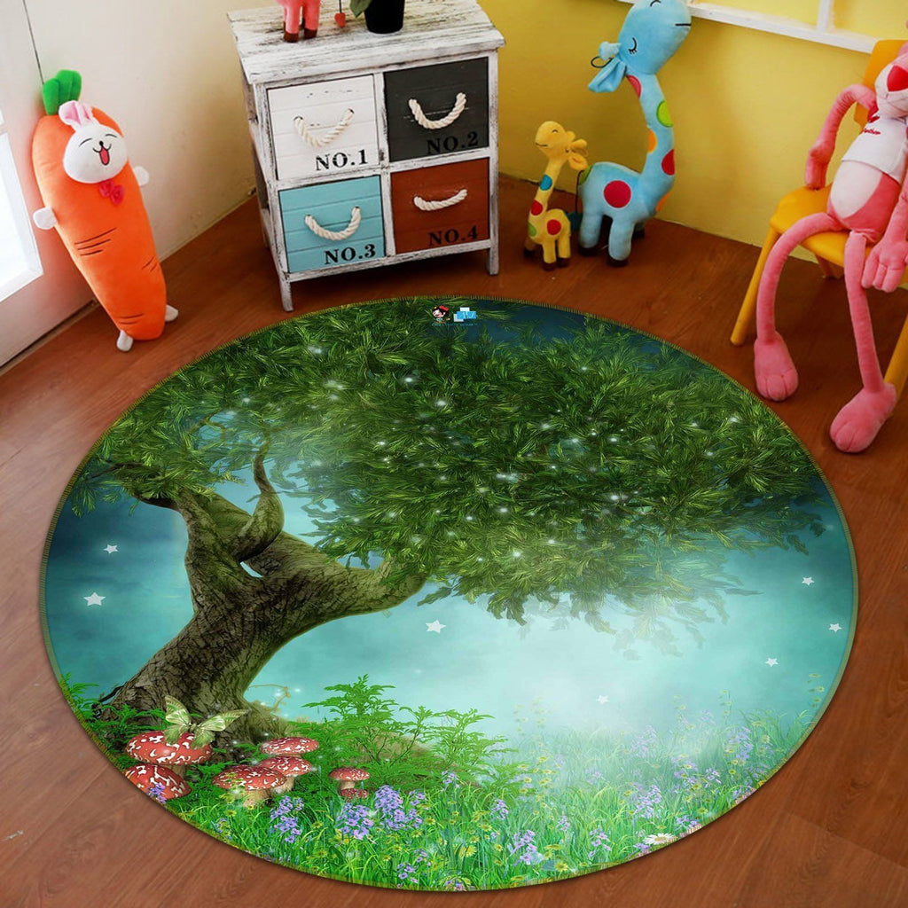 3D Sparkling Tree 115 Round Non Slip Rug Mat