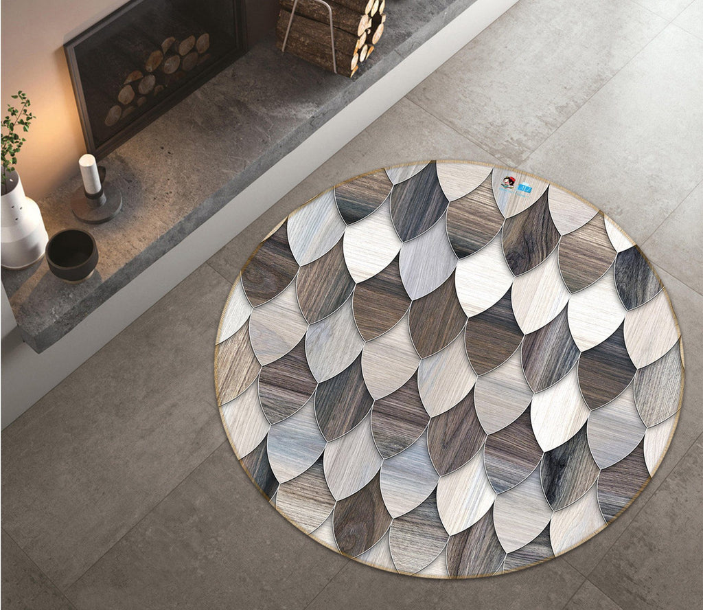 3D Splicing Feather Piece 135 Round Non Slip Rug Mat